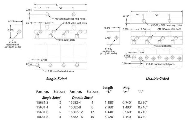 EM Series 4-Port Manifold, Single-Sided