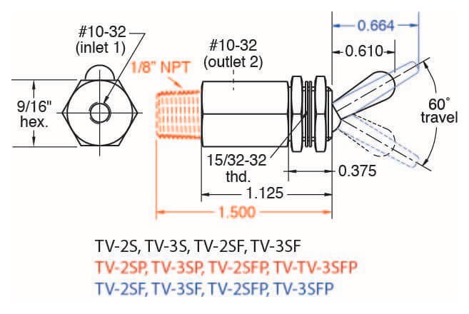 3-Way Toggle Valve, N-C, Plastic Toggle, #10-32