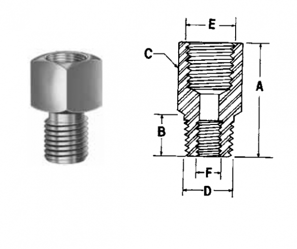 Specifications | 3/8" NPTF female x 1/4" NPTF male |